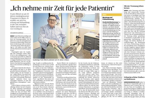 Im September 1995 habe ich auf der Kirchstrasse in der Moerser Altstadt meine gynäkologische Praxis eröffnet. Nach über 10 Jahren erfolgte der Umzug in das ehemalige Möbelhaus Knuffmann am Neumarkt, das zum Ärztehaus „Medizin Moers“ umgebaut worden war. Meine Tätigkeit führe ich auch nach drei Jahrzehnten mit der selben Freude und Leidenschaft aus. An einen Ruhestand ist lange noch nicht zu denken.